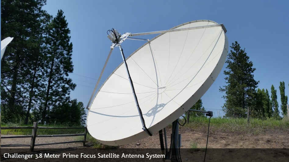 Prime Focus Satellite Antenna System or Challenger 4.5 Meter Prime Focus Satellite Antenna System HIgh efficiency receive-only C/Ku Band Antennas Available as a Fix Dish or Dual Axis Motorized Mount Available